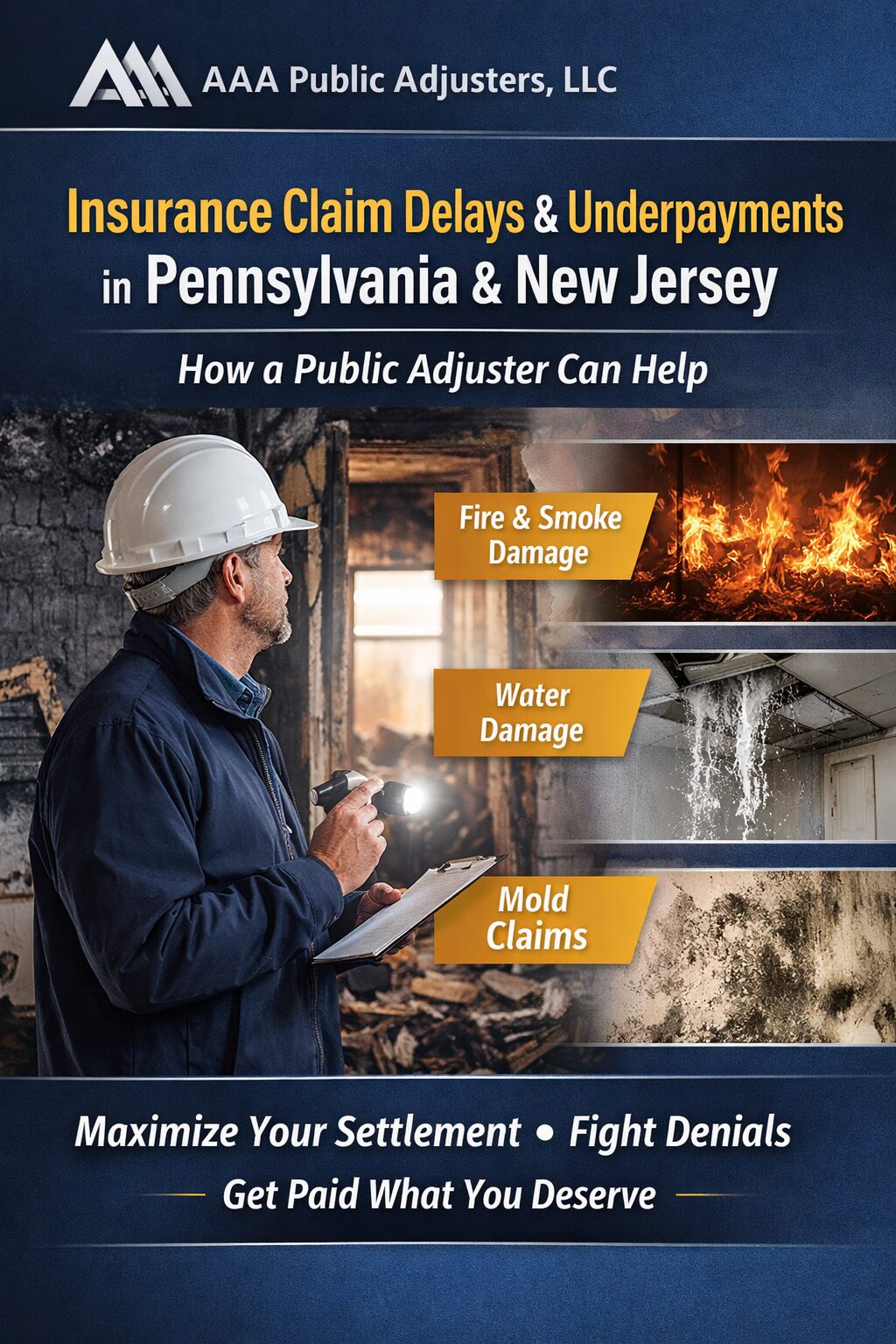 Public adjusters are responsible for evaluating the extent of damage to a home after an incident like a fire or storm. The public adjuster will evaluate property loss on behalf of a policyholder and help them file insurance claims in exchange for a fee. They work for you, not the insurance company and can save you a lot of money and stress by ensuring your insurance company is paying the full amount under your policy.